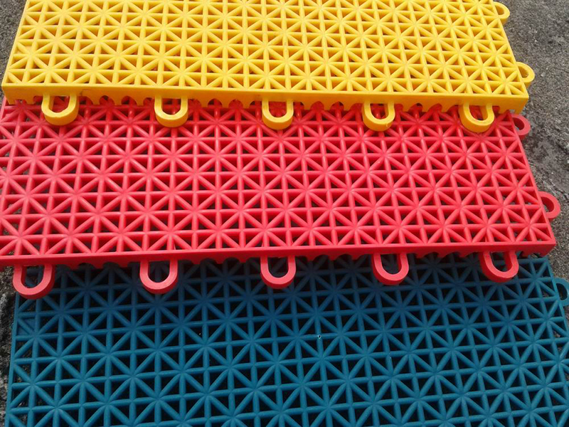 不能穿高跟靴或尖锐物品进场。悬浮式拼装地板采用悬浮镂空表面层加上底部支撑脚,颜色丰富,款式规格多样。采用锁扣卡扣式拼装连接。